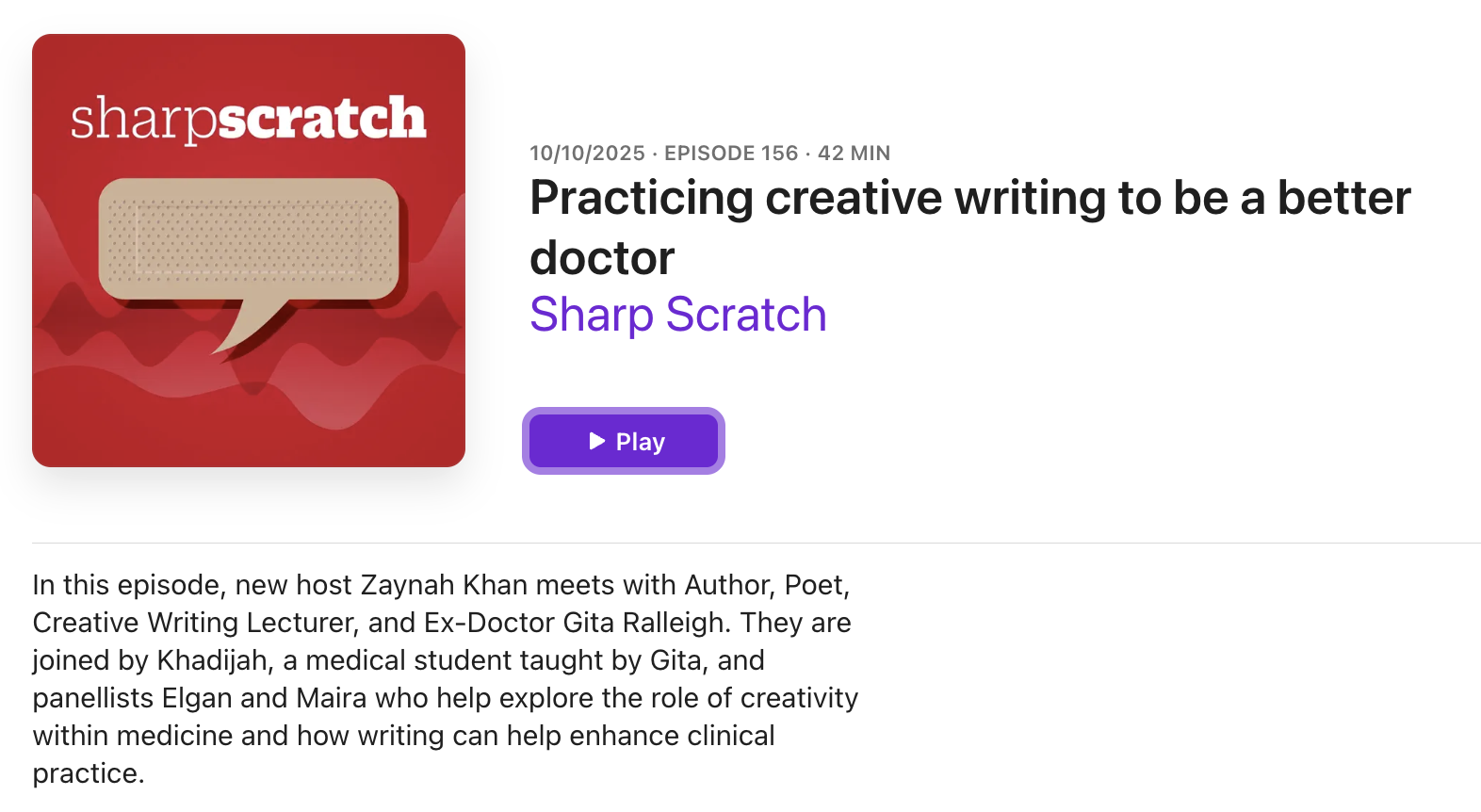 I had a wonderful time discussing creativity, writing & medicine with my brilliant ex-student and Student BMJ editor Zaynah!